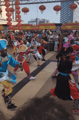 那一刻,英歌舞的槌声,龙灯的流光,非洲观众的尖叫,在热风中交织成了一种宏大的场景。