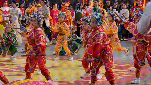 英歌舞被誉为中华战舞,流行于潮汕、闽南一带,前棚棒子对击转得飒,中棚小戏杂耍超有料,后棚武术收官,核心就是一个“战”字。