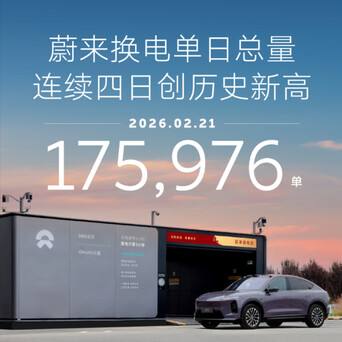2月22日,蔚来汽车官方公布的最新数据显示,2月21日(大年初五),蔚来全国换电站单日换电总量达到175976次,再次刷新历史新高。这也是马年新春以来,蔚来换电单日总量连续第四日创下新高。按照这一总量计算,平均每不到0.5秒就有一台蔚来车型完成换电补能。