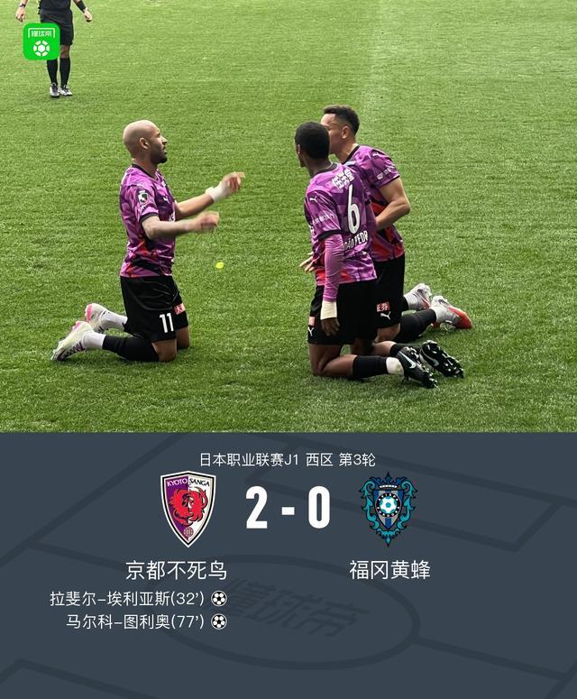 北京时间2月22日日本职业联赛J1西区第3轮,京都不死鸟主场对阵福冈黄蜂。小畑裕马巨大失误,拉斐尔-埃利亚斯、马尔科-图利奥分别破门。最终比分京都不死鸟2-0福冈黄蜂。