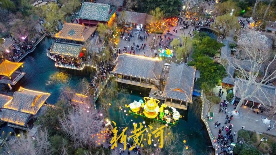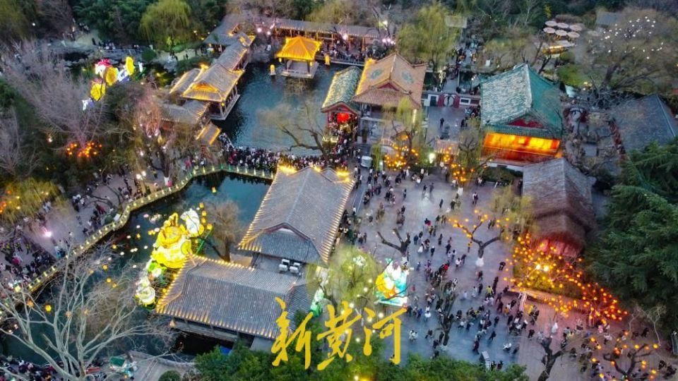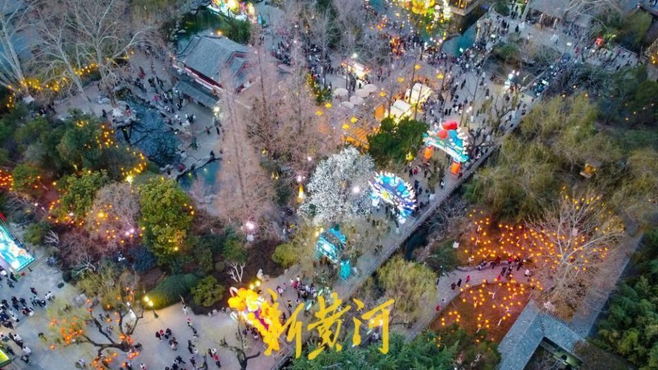 本届灯会以护城河为纽带,串联趵突泉、五龙潭、大明湖三大核心景区,以“三景融河,光映泉城”为主题,深度绑定马年生肖文化与济南本土元素。