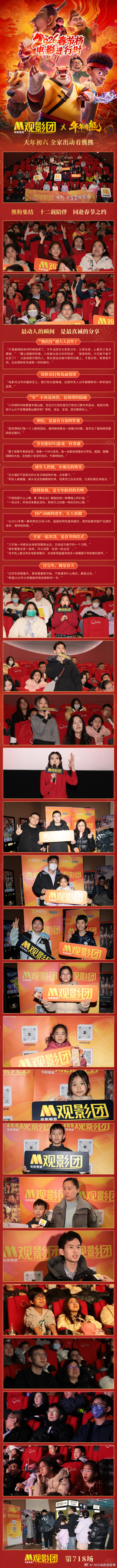 #看熊出没已经成为春节习惯# 电影频道@M观影团 电影《熊出没·年年有熊》新春特别观影活动温暖举办!大年初六,全家出动,大小影迷齐聚影院,共赴一场跨越十二年的温暖之约,在欢笑与感动中重温那些属于和“熊熊”的独家记忆。