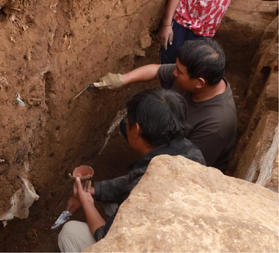 ▲中方发掘人员清理判断堆积现象