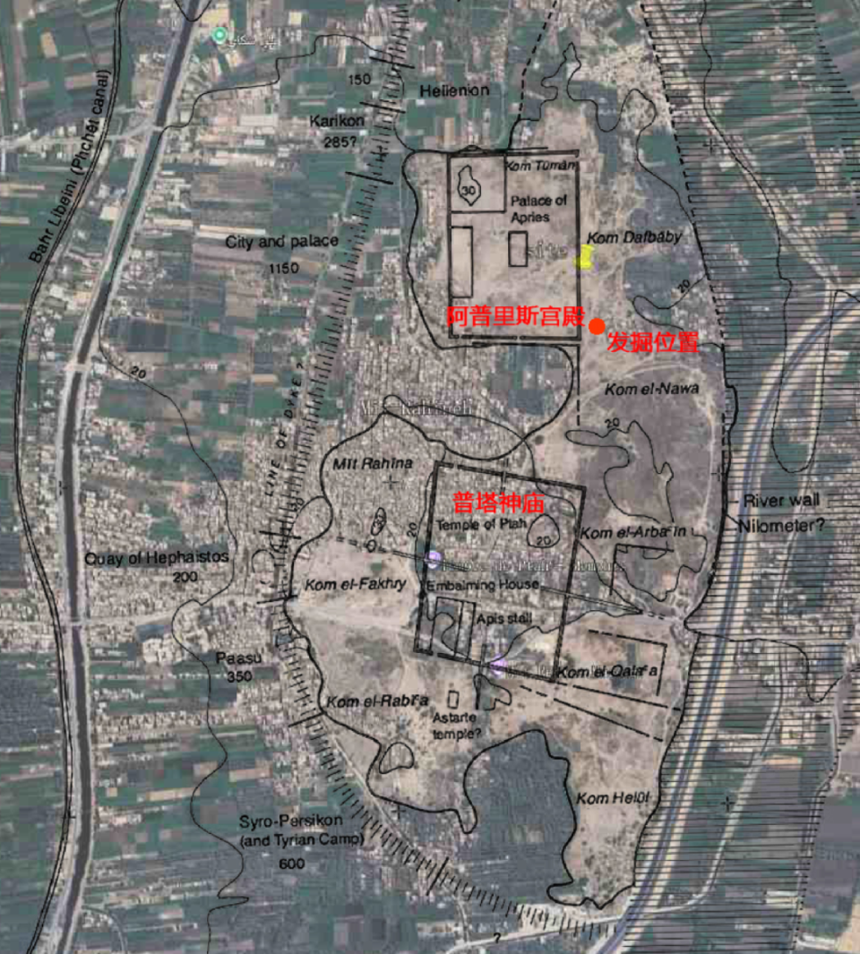 ▲孟菲斯遗址区及发掘位置