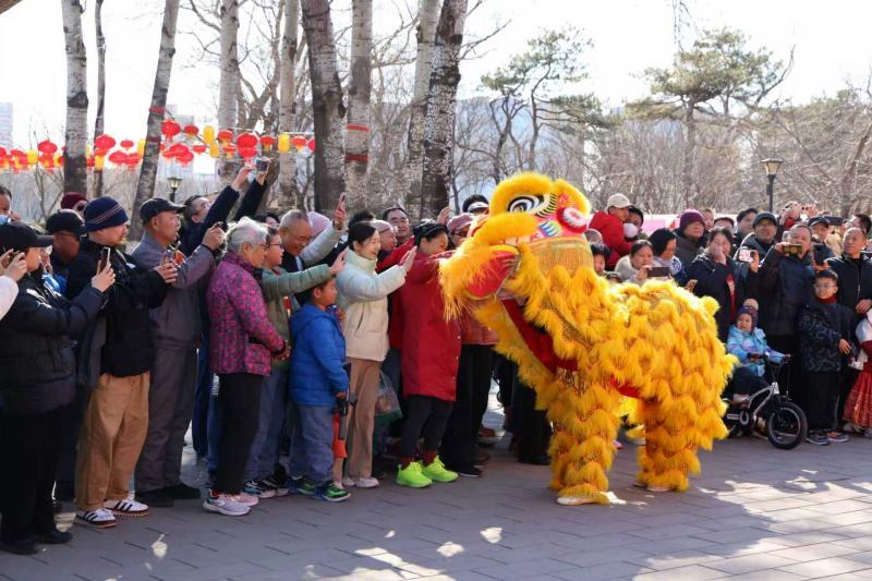 景山公园以“盛世迎春 中轴纳福”为主题,融合传统年俗、非遗文化与现代科技,为市民游客呈现了一场新春游园盛会。智能机器人挥毫写“福”、灵动献舞;每日“祥瑞巡游”上演舞龙狮、古彩戏法等非遗表演;观德殿“过年——宫廷非遗技艺贺岁精品展”展出景泰蓝、雕漆等非遗珍品;科普小屋“花开中轴”花卉展近30株反季牡丹竞相绽放,尽显“国色天香”。此外,限定文创“马上有福”草莓慕斯蛋糕成为游客青睐的伴手礼。