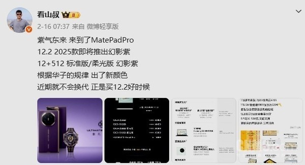 【CNMO科技消息】近日,有数码博主爆料称,华为计划为其旗舰平板电脑MatePad Pro 12.2英寸2025款新增“幻影紫”配色。该消息若属实,将为这款已上市半年的产品线带来新的外观选择。