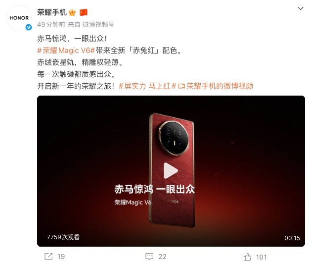 荣耀官方以“赤马惊鸿,一眼出众”“赤绒嵌星轨,精雕驭轻薄”诠释「赤兔红」配色的设计理念,既突出了配色的视觉辨识度,也强调了机身的工艺质感与轻薄设计,让新机在外观与握持体验上形成双重亮点。