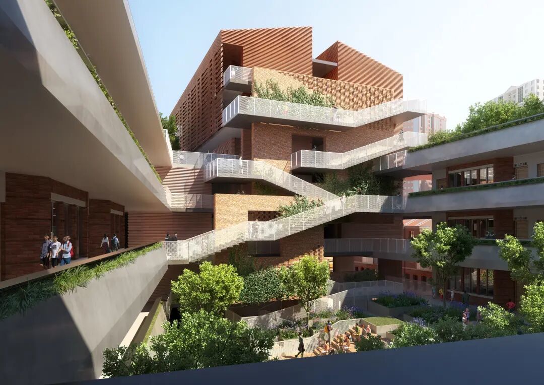 本项目作为一栋新建后集教学、宿舍及架空连廊于一体的满足STEM教育需求的综合建筑,将同步实施道路、管线、绿化及相关配套设施等室外总体工程。同时对基地西南侧既有建筑原教学综合楼实施功能完善及消防改造。项目计划于2026年下半年开工。