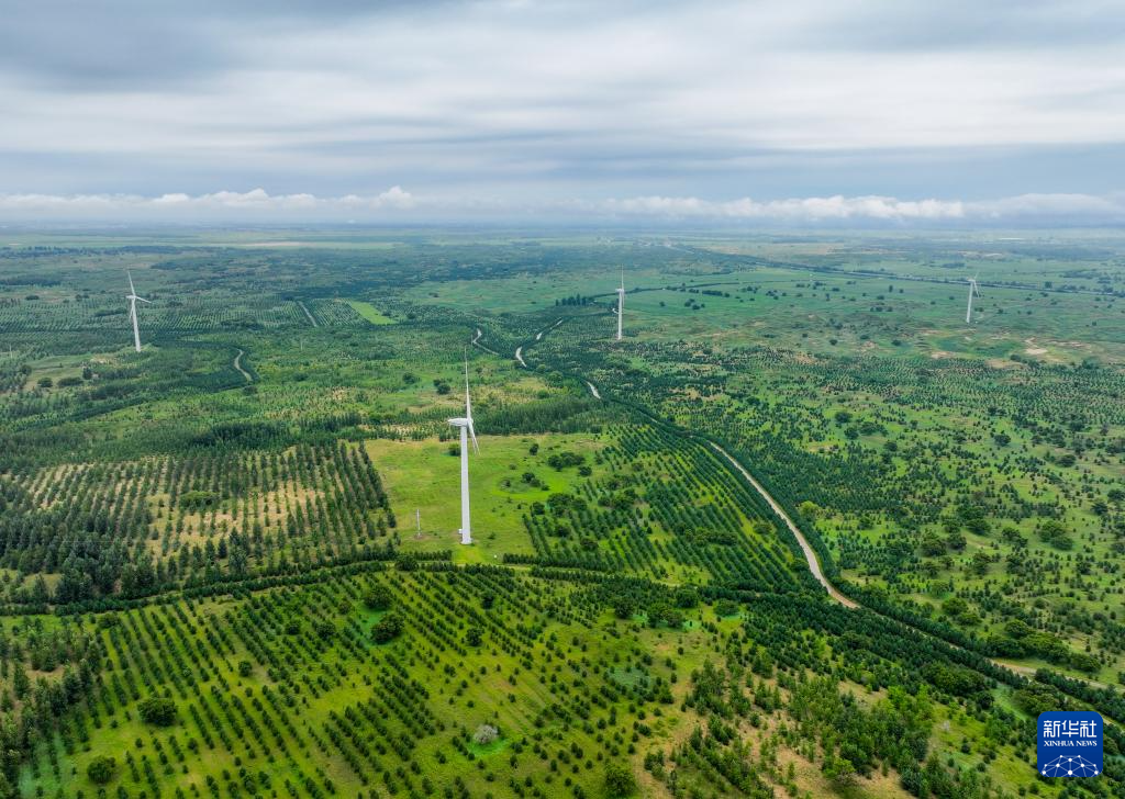 这是在内蒙古通辽市科尔沁左翼后旗,科尔沁沙地“双百万亩”综合治理工程努古斯台项目区内绿意盎然(2024年8月3日摄,无人机照片)。