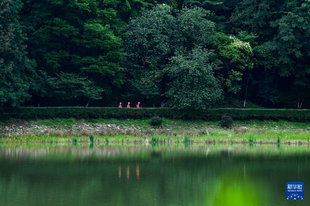 2025年7月1日,护林员在贵州省贵阳市长坡岭国有林场巡护山林。
