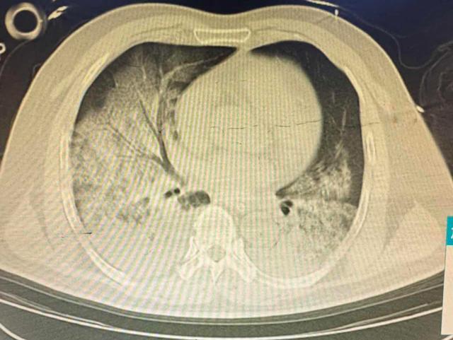 1月23日夜间,一名61岁男性患者从安化转入益阳市中心医院急诊。患者因严重溺水导致多脏器功能衰竭,外院呼吸机已难以维持氧合,病情极度危重。急诊完善胸部CT提示双肺大面积渗出病变超过80%,患者随即紧急转入重症医学科(ICU)。
