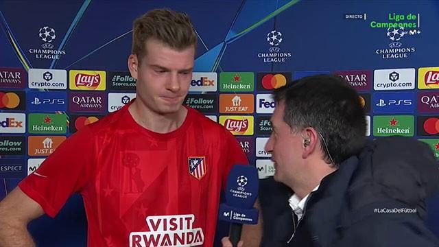 用帽子戏法帮助马竞4-1大胜布鲁日晋级欧冠16强后,马竞前锋瑟洛特当选全场最佳,赛后他接受了Movistar+的采访。
