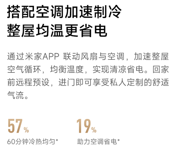 智能体验上,产品全面接入米家App,可实现100挡风速无级调节,支持远程操控、定时开关,搭配小爱音箱还能实现语音控制,风随声动更省心;同时兼容小米澎湃智联,可与空调等智能设备联动,回家前远程预设,进门即可享受舒适气流。机身配备磁吸蓝牙遥控器、触控屏,操作便捷,还支持关机记忆,再次开机可恢复上次使用设置。