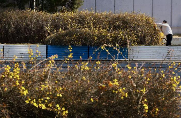 目前二环辅路沿线迎春花处于初绽至渐开阶段,盛花期预计持续至3月下旬,将与玉兰花、早樱次第衔接,构成连续春季赏花景观。