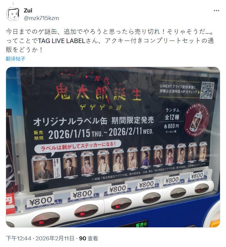 也有的人,志在集齐全套。一位叫Zui的X用户就发帖吐槽,自己想补齐“鬼太郎之谜”系列的标签贴纸,结果去的时候发现已经卖完了,并且还请求TAG LIVE官方把这些贴纸做成亚克力挂件的全套组合出售。