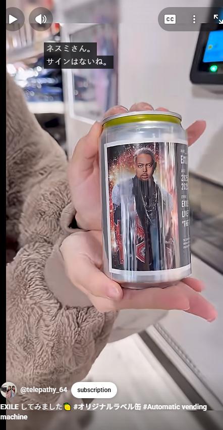 YouTube 用户 telepathy_64 在视频中,记录了自己购买一罐“应援饮料”的过程。视频中,她站在一台某男团演唱会主题的自动贩卖机前,展示窗口中陈列的,是贴有不同成员形象标签的罐装饮料,每款售价统一为800日元。