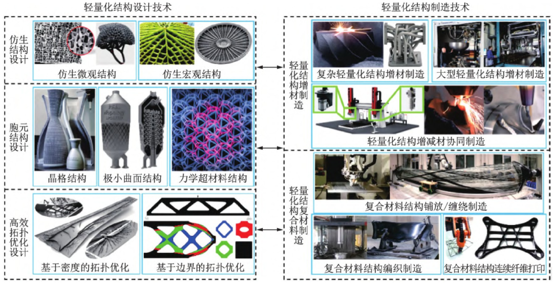 图1 应用于航空航天结构的轻量化设计制造技术