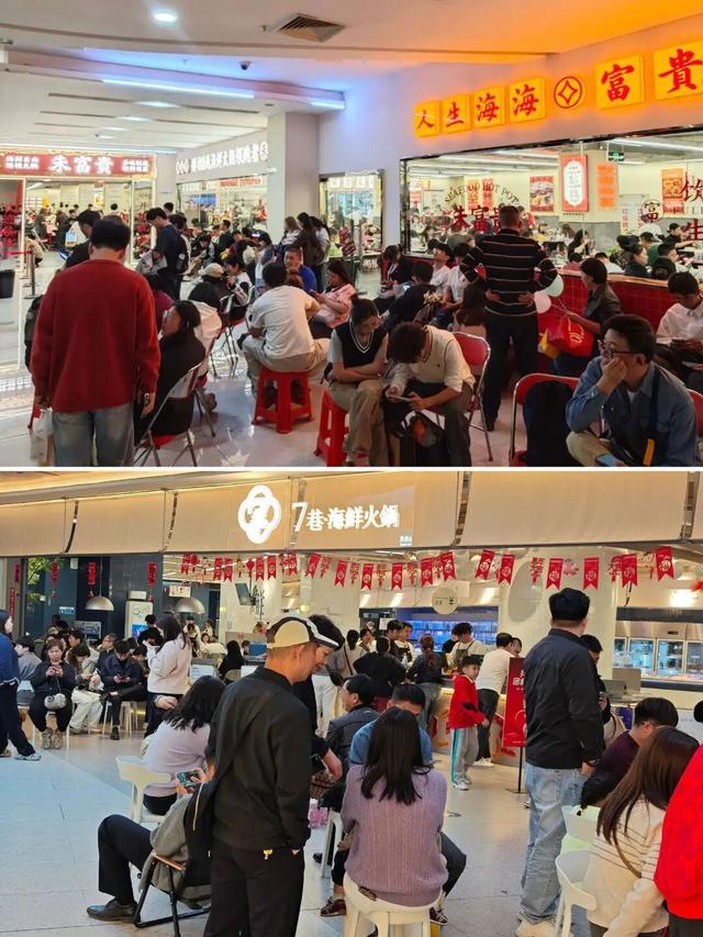 春节档的漳州,最难排队的餐饮依旧被本土顶流牢牢占据。初五晚近9点,内参君在碧湖万达广场看到,朱富贵火锅排队高达804桌,自从进入漳州市场以来一直占据城市顶流的位置。而吾悦广场的流量担当,则是同赛道的7巷海鲜火锅,排队同样超过200号。