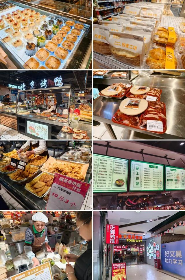 来到地下一层的超市,此刻已是人流如织。在这里,内参君看到了多款网红烘焙、当日现烤的北京烤鸭、手工现包云吞、熟食卤味等,烟火升腾,井然有序,甚至还新开了一个“食光里美食城”,灯火通明处,让人恍惚到了北京的网红商场,让人不禁感慨“小县城的消费体验太好了!”
