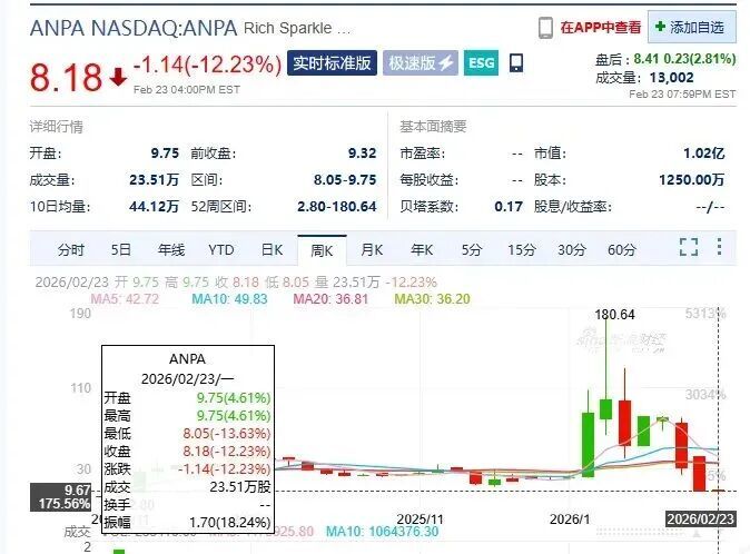 现在我们来看 ANPA 的股价走势图,堪称恐怖片。