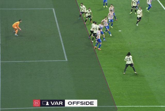 问题在国王杯半决赛里彻底爆发,巴萨对阵马竞的比赛中,库巴西的进球经过了超过7分钟的审查被取消。这是半自动越位系统诞生以来,最完整的一次“反面教材”。