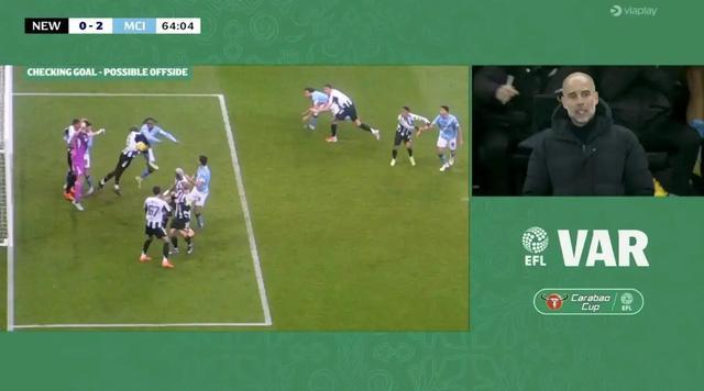 上个月英格兰联赛杯半决赛首回合中,主角还是曼城和纽卡。第67分钟塞门约进球后,VAR需要判定哈兰德是否存在越位获利行为。然后意外发生了,半自动越位系统彻底失灵,无法完成位置分析,视频助理裁判只能通过人工画线完成判罚,进球无效。