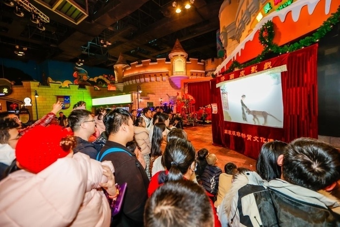 而每天上演的两场亲子互动幽默诙谐,引人入胜,儿童皮影戏光影流转,演绎妙趣故事;杂耍卖货郎身怀绝技,逗趣互动笑声不断。老少同乐,天南海北的游客们共度温馨新春时光。