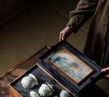 因此礼盒还搭配了专属仿宋茶盘、青绿山水茶巾。