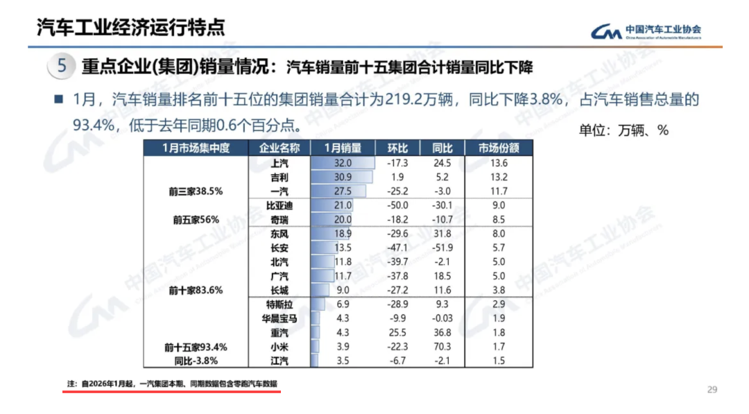 日前,在中国汽车工业协会(下称“中汽协”)公布的最新月度数据中,中国一汽以27.5万辆的成绩位列行业第三,仅次于上汽和吉利。需要注意的是,中汽协在报告中注称,“自2026年1月起,一汽集团本期、同期数据包含零跑汽车数据”。这意味着,此后在中汽协公布的数据中,一汽集团将并表零跑汽车。