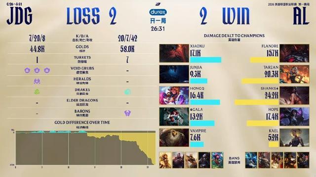 北京时间2月26日,LPL淘汰赛胜者组半决赛,JDG 3-2战胜AL,晋级胜者组决赛。