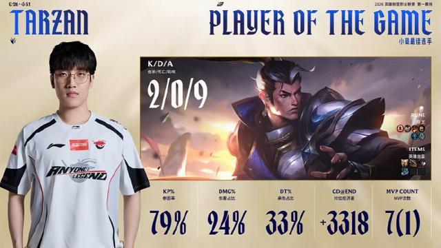 本局MVP给到打野对位打爆的Tarzan!