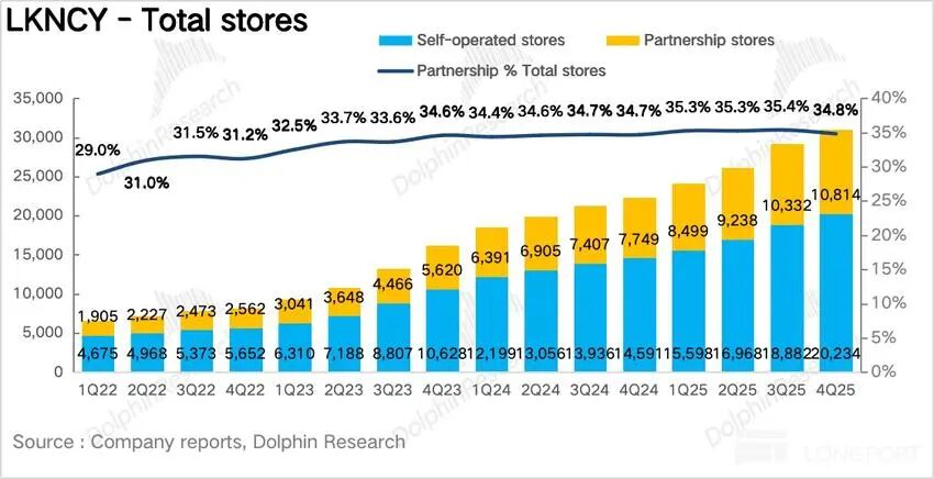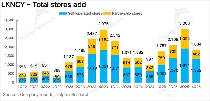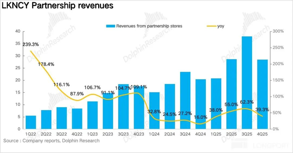 海豚君认为,这里一方面是由于2025年瑞幸经历了在下沉市场大规模开设加盟门店抢占市场,而这些加盟商即将迎来第一个淡季(一季度),可以帮加盟商平稳过渡。