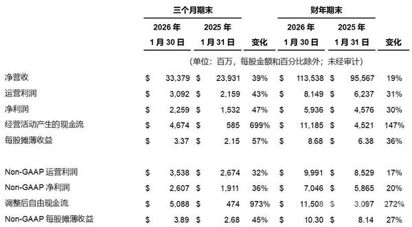 2026财年全年,戴尔科技集团营收1135亿美元(约合人民币7764元),同比增长19%,创历史新高。全年每股摊薄收益为8.68美元,同比增长36%;全年非一般公认会计准则(“non-GAAP”)每股摊薄收益为10.30美元,增长27%。