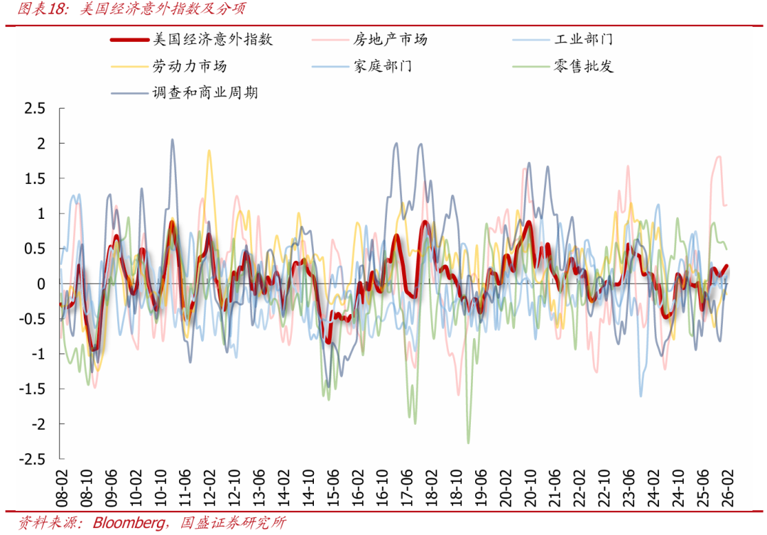 3)经济意外看,美国经济意外指数自去年9月以来回正并震荡向上,显示基本面短期内对快速宽松的约束仍在;