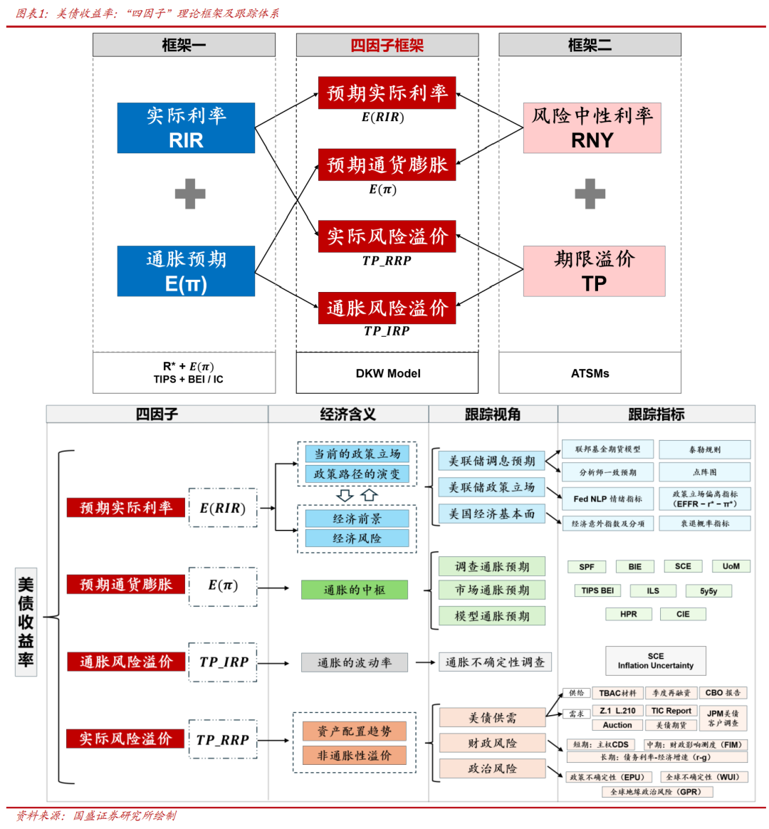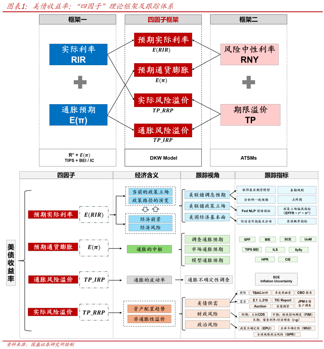 基于此,我们从经济理论与市场定价两条主线出发,对美债名义收益率的决定因素进行系统梳理,形成了一个相对完整、便于实证与交易分析的“四因子框架”。通过该框架,可以更有针对性地理解不同宏观环境与政策阶段下,美债收益率变动背后的主导因素,并为后续的情景分析与市场判断提供一个较为有效的工具。