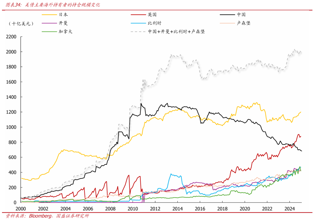 当前海外投资者持有超过三成的美债,有必要对其进行进一步剖析。海外投资者维度,对美债需求的进一步拆解有赖于美国财政部国际资本流动(TIC)报告。与 Z.1 表侧重于宏观部门存量结构不同,TIC数据从跨境资本流动与持仓的角度出发,提供了对海外美债持有情况更高频、更细分的观察窗口,是分析海外需求变化不可或缺的补充。