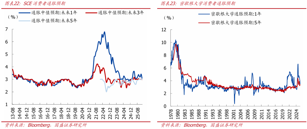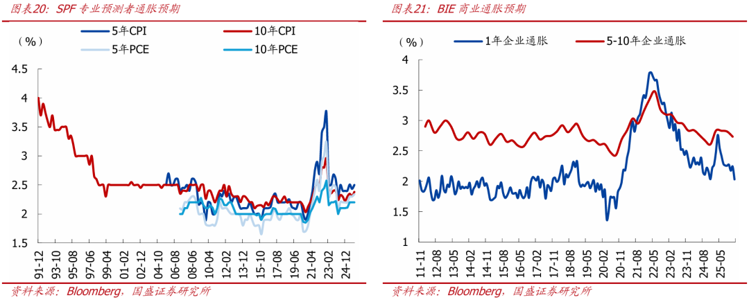 在市场指标中,5y5y通胀预期更具“中枢”含义,其反映的是市场对中长期通胀稳态的判断,而非短期价格波动。由于该指标较大程度上剥离了当期通胀冲击与短期政策扰动,美联储在政策沟通中亦频繁将其作为评估长期通胀预期是否锚定的重要参考。一般而言,只要 5y5y 通胀预期维持在与政策目标相一致的区间内(2%附近),短期通胀预期波动对政策立场的影响往往是可控的。