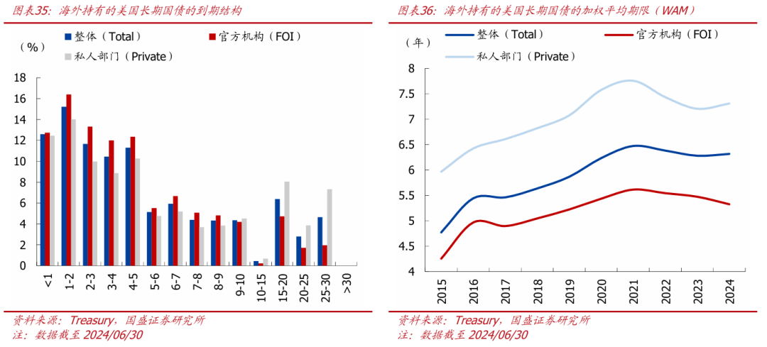 2)年度看,主要关注海外持有美债久期的变化。TIC每年4月底发布的年度报告(SHL Report)可以观察海外持有美国长期国债的到期结构。