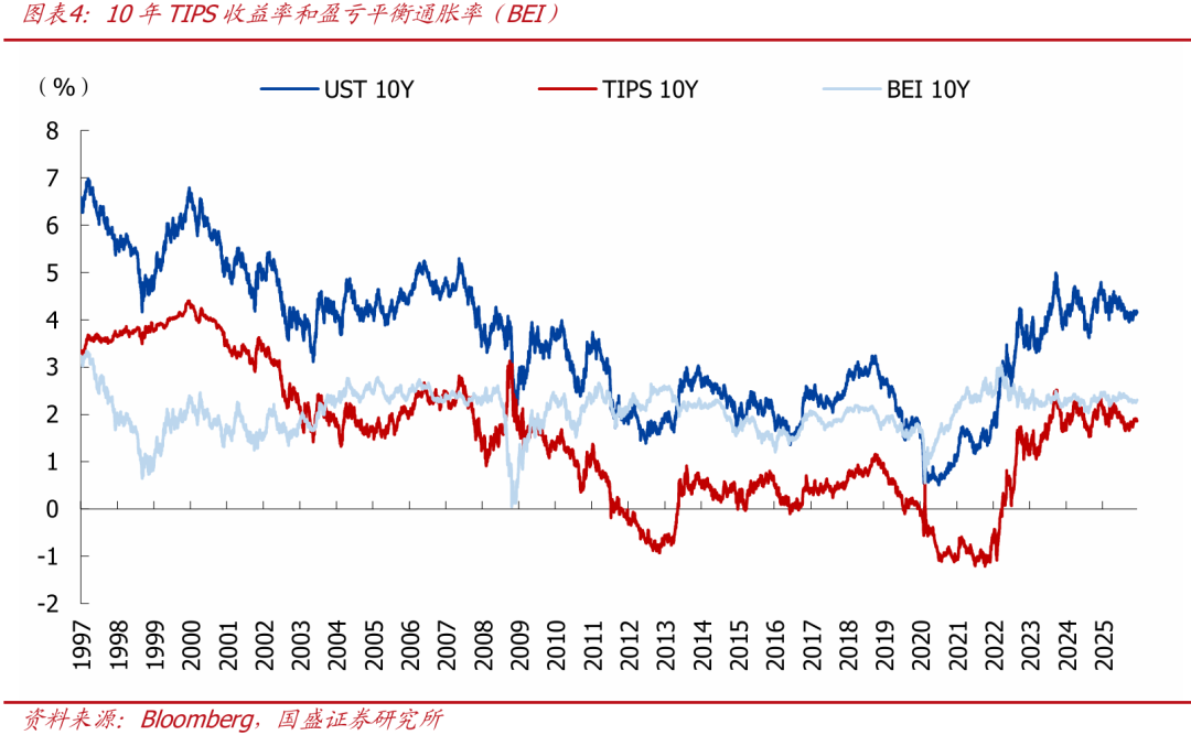 TIPS作为可交易品种,提供了高频的实际利率预期。然而,其收益率受流动性、市场结构等交易特征影响,存在“流动性溢价”,因此TIPS收益率及其推导出的BEI仅为实际利率与通胀预期的近似估计。