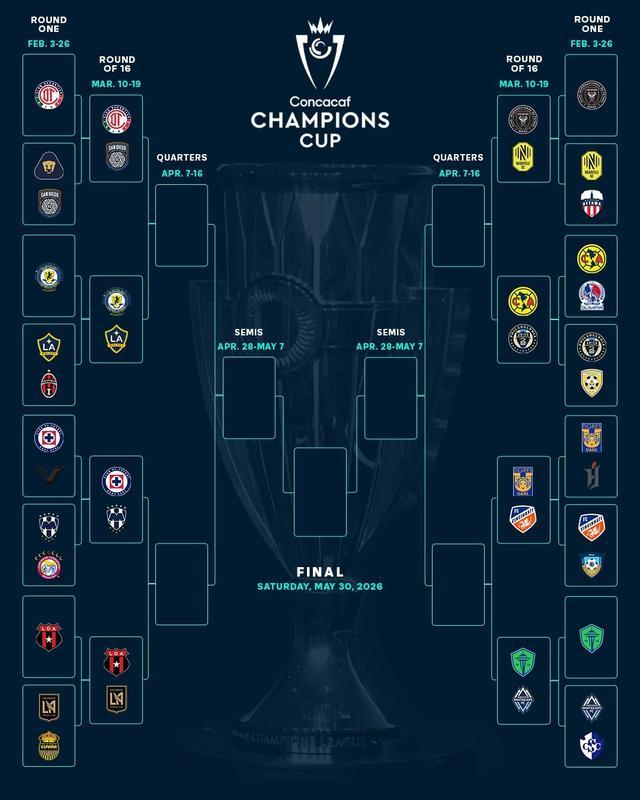 中北美冠军杯1/8决赛具体对阵: