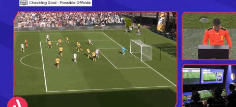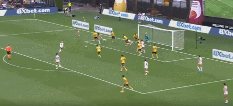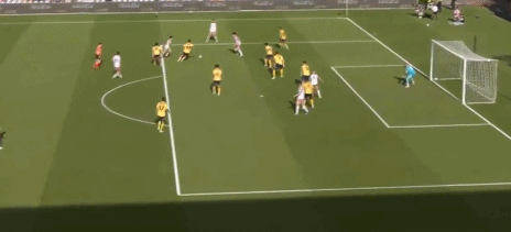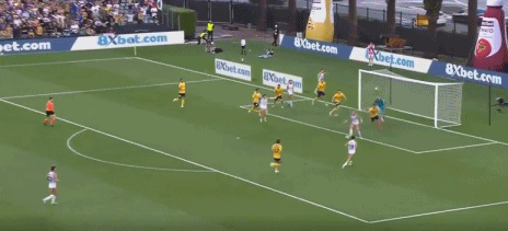 第23分钟,亚当斯破门,但裁判示意此前队友越位位置干扰,进球无效