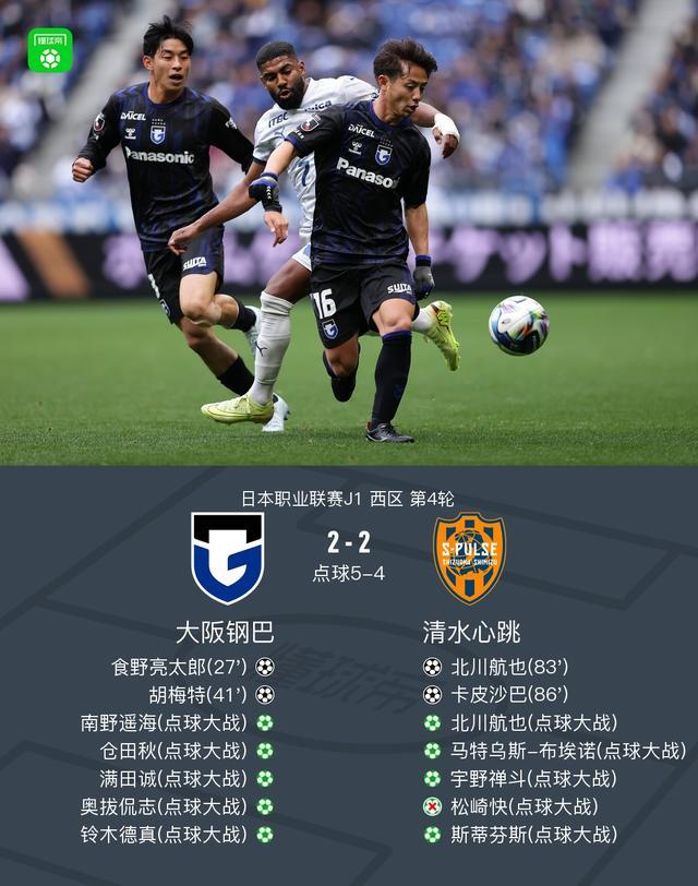点球大战,大阪钢巴5-4战胜清水心跳