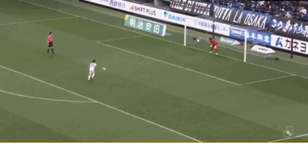 第64分钟,北川航也过掉防守后射门,三浦弦太门线前将球解围