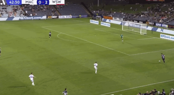 第43分钟,亚历克斯-罗宾逊送大礼,瑞安-弗雷泽吊射破门,西悉尼流浪者3-0!
