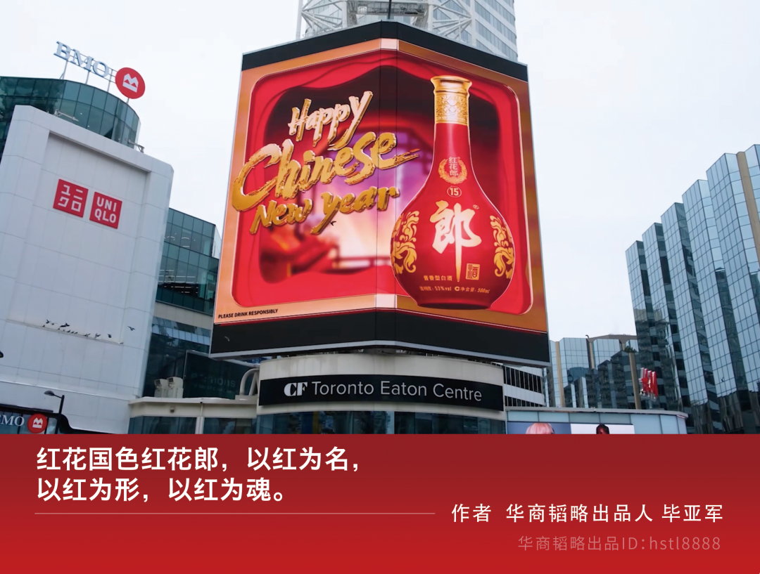 “红花绽放,国色迎春,郎酒·红花郎恭祝全球华人新春快乐!祝愿伟大祖国繁荣昌盛。”