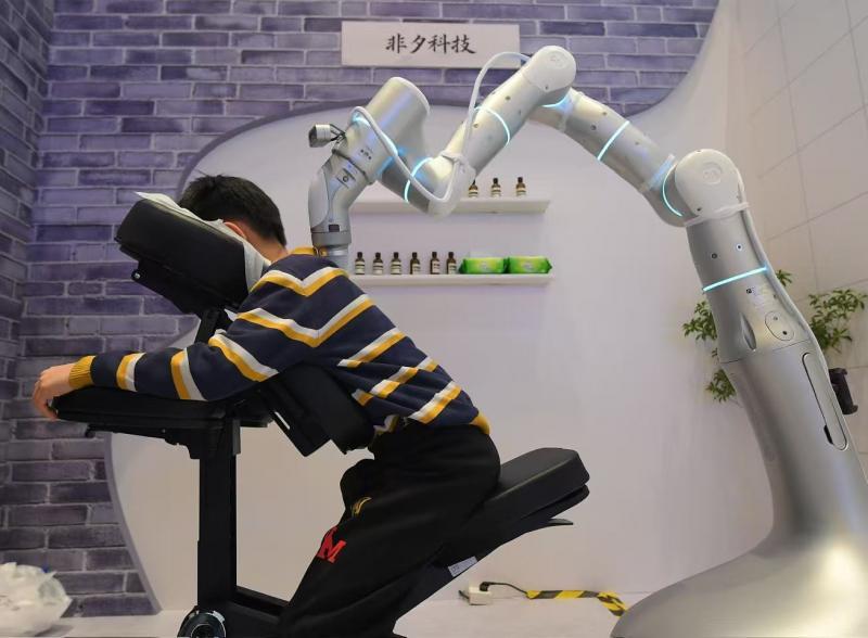 大会还设置了三大沉浸式互动体验区,以可感、可触的形式,全景展现人工智能重塑社会生产与生活的生动图景:机器人摄影师为观众定格 “最帅瞬间”;咖啡师机器人依据体验者提供的照片,制作专属拉花拿铁;按摩机器人熟练运用中医手法,提供精准肩颈护理…… 多款功能各异的机器人共同勾勒出丰富多元的未来生活场景,正一步步走进日常。