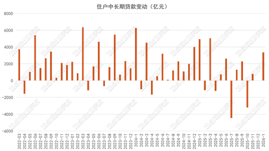 2026年1月,我国人民币贷款增加4.17万亿元,开年信贷投放保持较强的支撑力度。分部门来看,住户部门贷款增加4565亿元,其中短期贷款增加1097亿元,中长期贷款增加3469亿元,住户中长期贷款成为居民部门信贷增长的核心支撑,也与近期重点城市房地产市场改善型需求持续释放的趋势形成呼应。