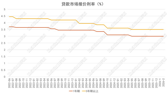 在信贷投放平稳落地的同时,市场核心定价利率保持连续稳定。2026年2月24日,全国银行间同业拆借中心公布最新贷款市场报价利率(LPR):1年期LPR维持在3.0%,5年期以上LPR保持在3.5%,两大关键期限LPR已连续9个月保持不变。