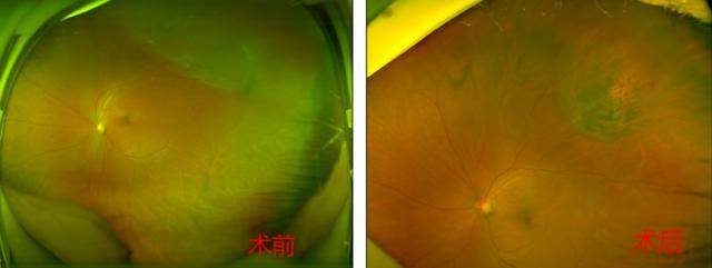 陈忠平教授团队立即启动视网膜脱离急诊救治绿色通道,快速完成FCB球囊植入术及术后激光治疗。术后邓女士视力恢复至0.6,视网膜成功复位。
