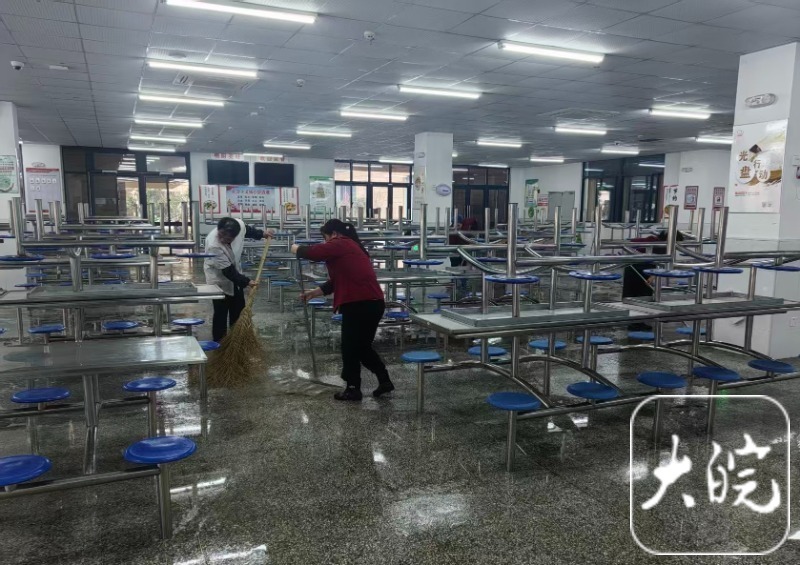 大皖新闻记者了解到,该校食堂已开始大扫除,学生个性化教室也打扫到位。